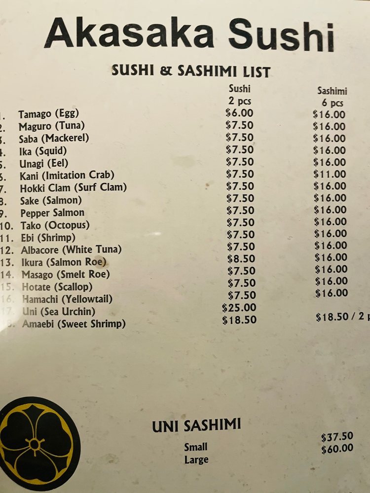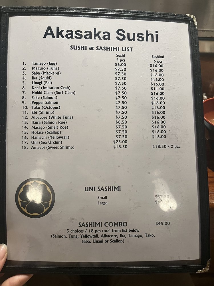 Akasaka Sushi Restaurant Menu (Update 2025)